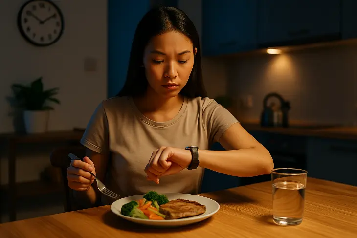 Sebuah studi dalam The Journal of Clinical Endocrinology & Metabolism (2020) menyebutkan bahwa orang yang makan malam jam 10 malam memiliki kadar gula darah lebih tinggi dan membakar lebih sedikit lemak dibanding mereka yang makan jam 6 sore.